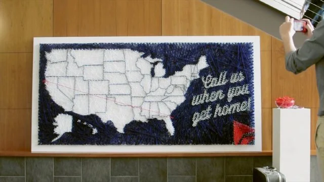 A group collaboration with fellow designer, Kristie Feltner and myself, the Delta interactive display was created. The display is located in Delta terminals across the United States. Travelers can interact with the display by stringing out where their travels will take them. They can then photograph and upload them to their favorite social networking sites to share with their friends. The feeling is personal and nostalgic; encouraging the traveler to call Delta when they arrive at their destination. In turn, this promotes feedback to the company in a fun and interactive way that allows the customer to be subtly reminded of their journey and to share it.